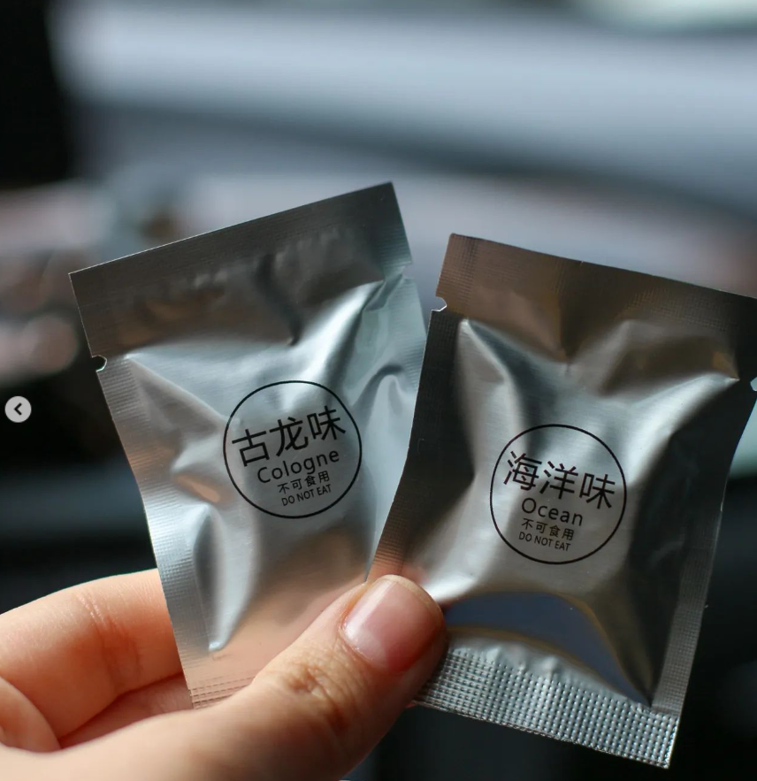 В комплекті є бутилочка з ароматом (5мл) і двохсторонній скотч.