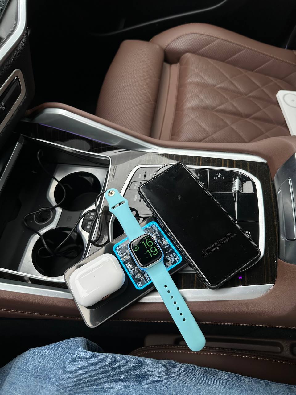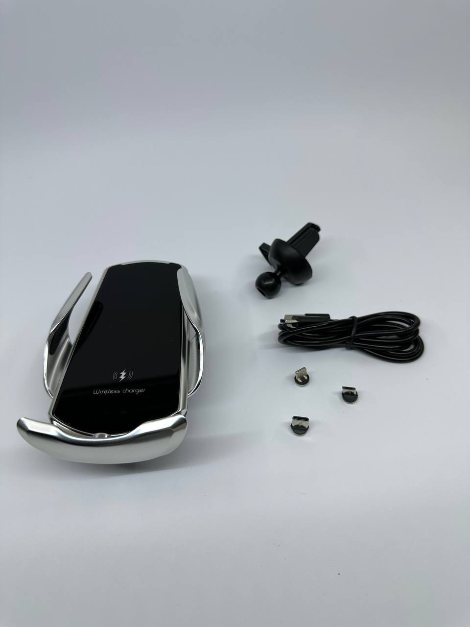 Має функцію безпровідної зарядки, але якщо телефон не підтримує таку функцію, в комплекті є три види розʼємів (USB, TYPE-C, LIGHTNING)