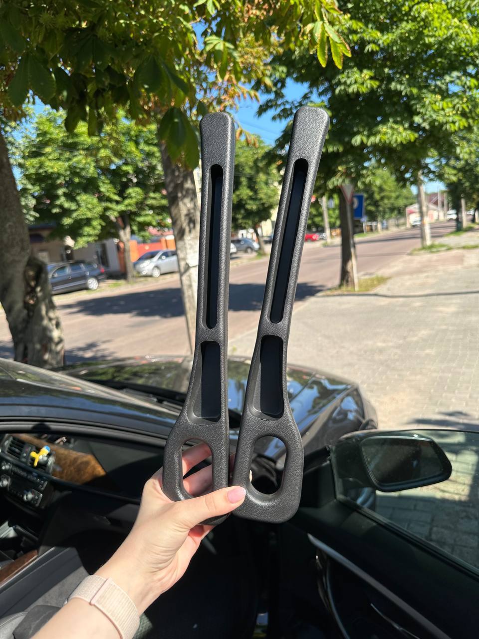 Кріпиться в решітку автомобіля. Має сенсор для автоматичного відкривання та закривання бокових фіксаторів