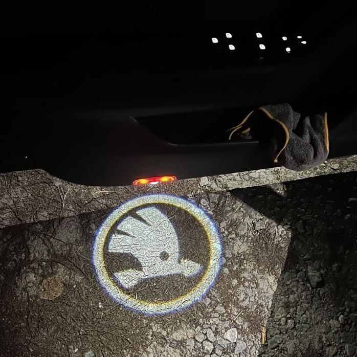 Якщо у вас немає штатних ліхтариків, пропонуємо вам на двосторонньому скотчі проєктор, якість логотипа висока!